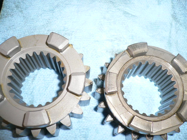 歯数が違うだけではなく、ドッグ部の形状も、純正でよく起こるギヤ抜け防止の工夫が見られます。