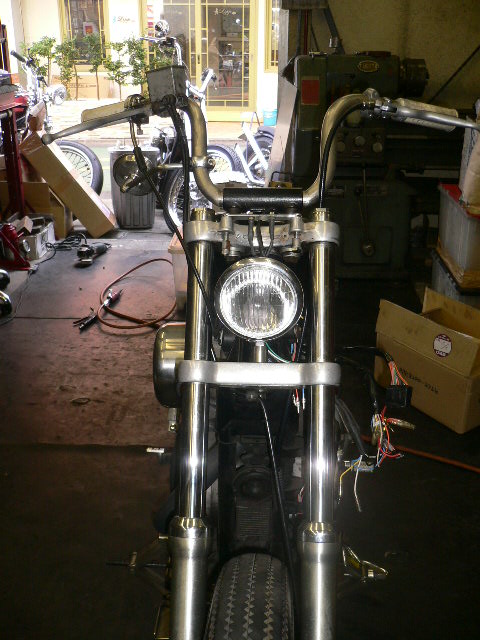 いきなり、フロント廻りが外れている写真ですが、先日、納車したスポーツのトリプルツリーの加工中です。