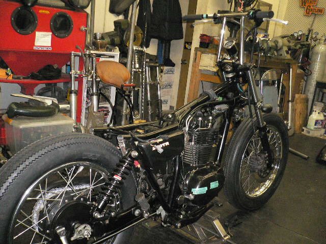 数年前にカスタムさせてもらったSR400。久しぶりのご来店です。スロットルケーブルの交換で、お預かりしました。部品待ちです。