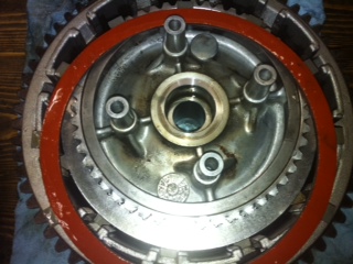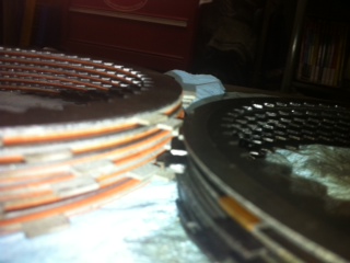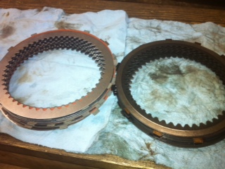クラッチのすべりでお預かりした4速エボ。調整では直らず、分解してみるとフリクションプレート、スチールプレート共にかなりの減りです。