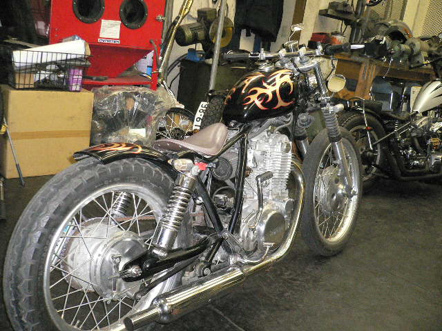 以前、カスタムさせてもらった、SR 400。車検でお預かり。きれいに乗ってくれています。