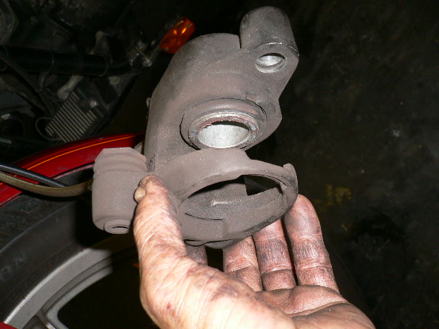 ブレーキの鳴きがあるので、キャリパーを外し、パッドを外してみると、パッドのカスでドロドロ!