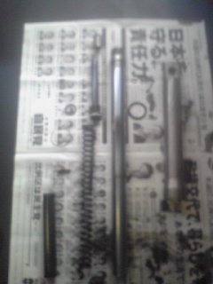 ESTRELLAのフロントフォークオーバーホール中です。今日は、デジカメを忘れて、携帯のカメラの写真なので、画像が荒いです。