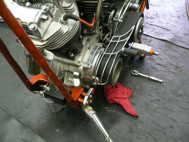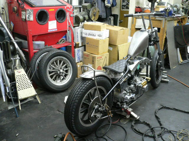昨年制作したリジットショベル・チョッパーをプライマリ・ベルトガード制作、ETC取り付けでお預かりしました。