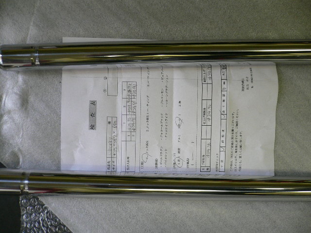 再メッキにだしていたインナーチューブが戻ってきました。キズも綺麗になくなりました。早速組み付けました。