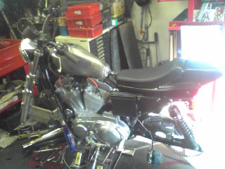 前後タイヤ交換&足廻りの整備中です。今日は、デジカメを忘れたので、携帯で撮った写真です。