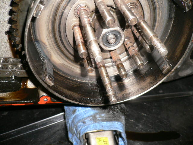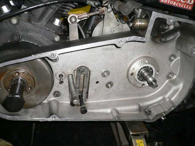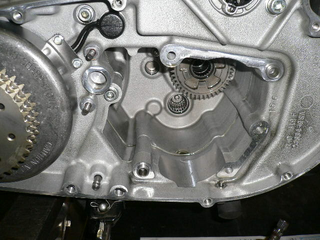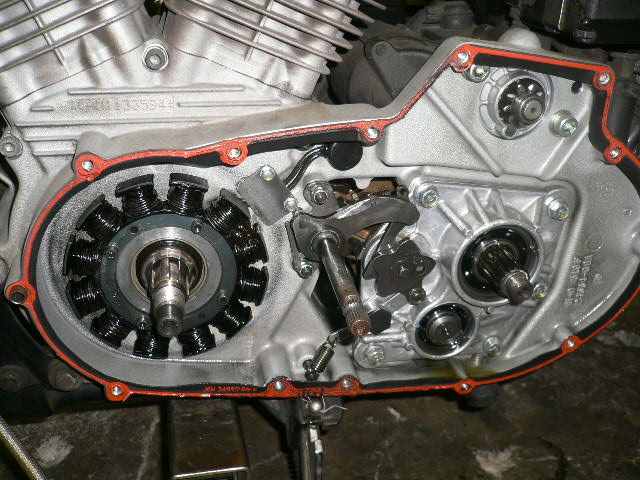 プライマリカバーを開けて、クラッチ等を外し、