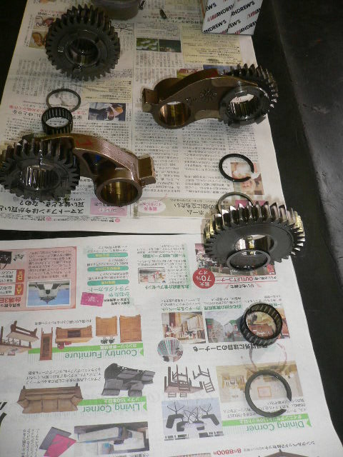 ギヤ類、ベアリング等を順番に外していきます。