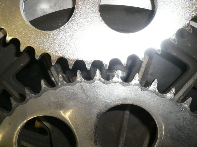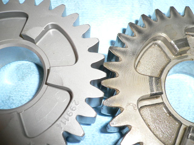 歯数が違うだけではなく、ドッグ部の形状も、純正でよく起こるギヤ抜け防止の工夫が見られます。
