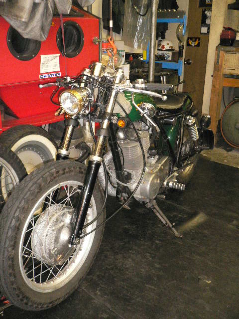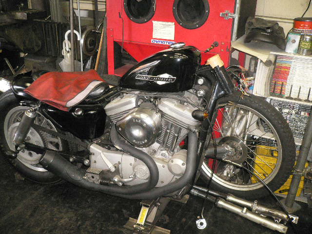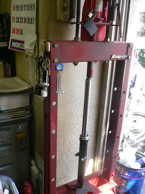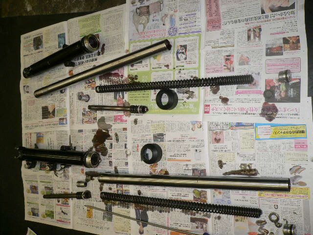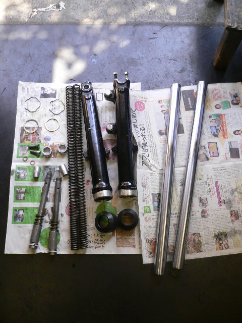 いきなり、フロント廻りが外れている写真ですが、先日、納車したスポーツのトリプルツリーの加工中です。