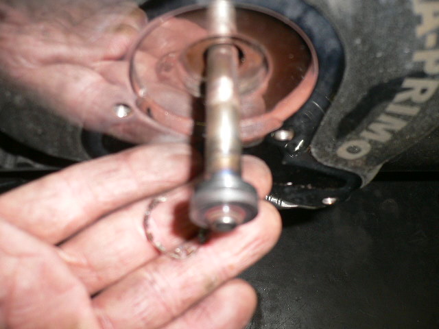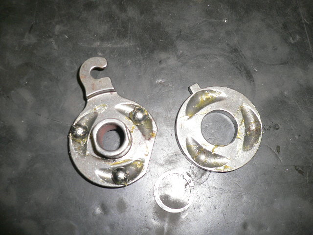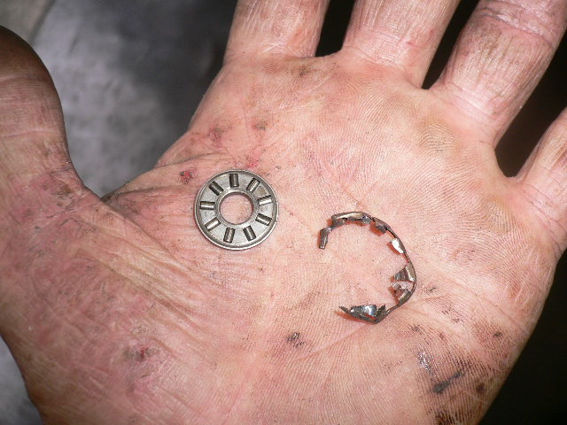 クラッチプッシュロッドの先端に付くこのパーツ。完全にベアリングが破損しております。