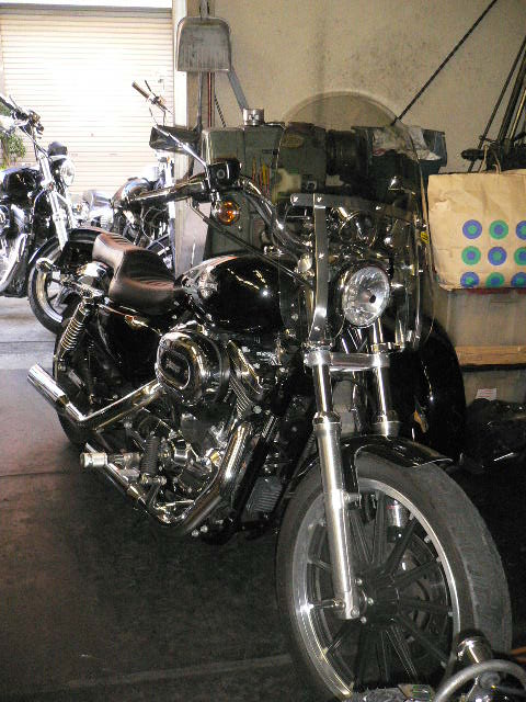 ラバーマウントのスポーツが続きます。こちらは、車検&ロッカーカバーからのオイル漏れ修理でお預かり中のXL1200Lです。