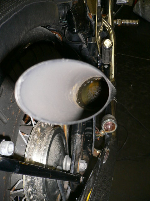 水がたっぷり入っています・・・こういう事にならないように、カチ上げマフラーをワンオフ、または、購入した場合は、一番下になる場所に水抜きの穴を必ず開けておきましょう。