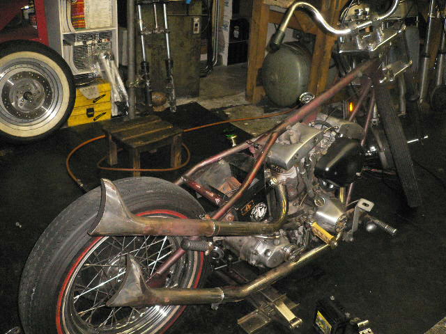 これだけ長いと、エンジンをかけた時にビビッてしまうので、十分な強度のステーを作って支えます。