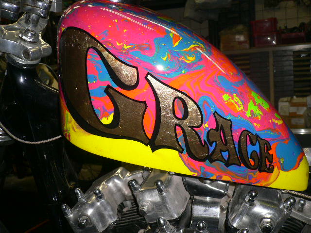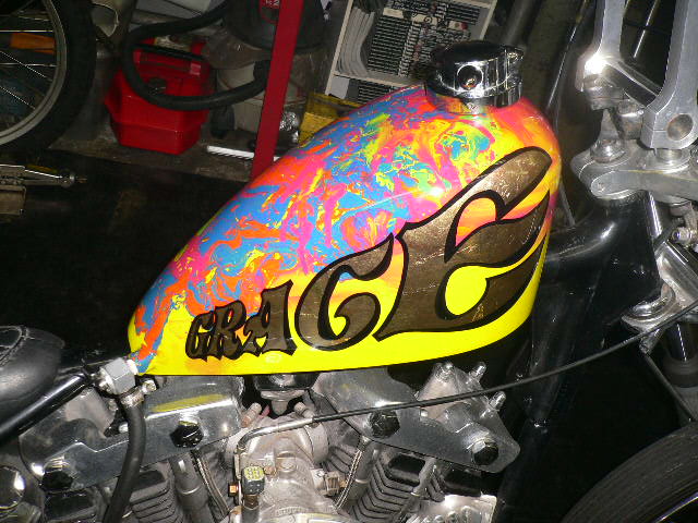 以前から、委託販売で、お預かりしている車両(アイアン)のオーナー(塗装屋さん)が、仕上がったタンクを持ってきてくれました。