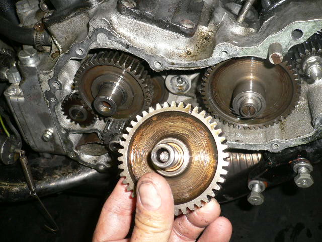 カムカバー内のコイツ(ディストリビュータードライブギヤ)を支えているボルトが折れ、