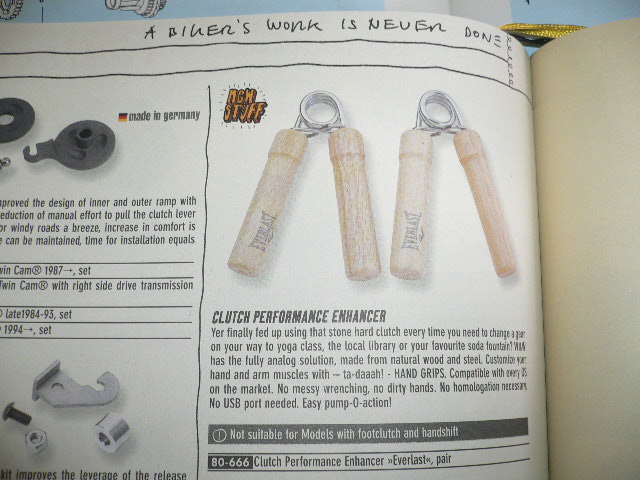 ドイツ語は、読めませんが、クラッチレバーが重ければ、これで、鍛えろと言うことなのでしょうか・・・。