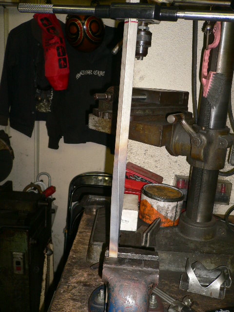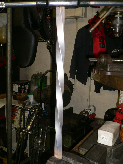 ツイストシーシーバーの製作です。ステンレスの角棒をガスで炙り、少しずつねじっていきます。均等にねじれたら、今度は、曲げ。車体に付いている、シーシーバープレートに合わせて、曲げていきます。ねじり始めた頃には、すでに汗だくです!!