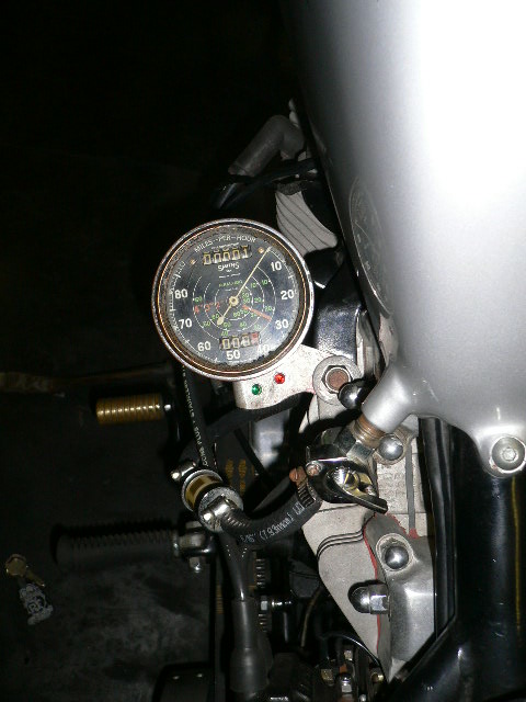 スミスのスピードメーター取り付けました。動き方がカッコイイけど、比率が違うので、当然、正確ではありません。