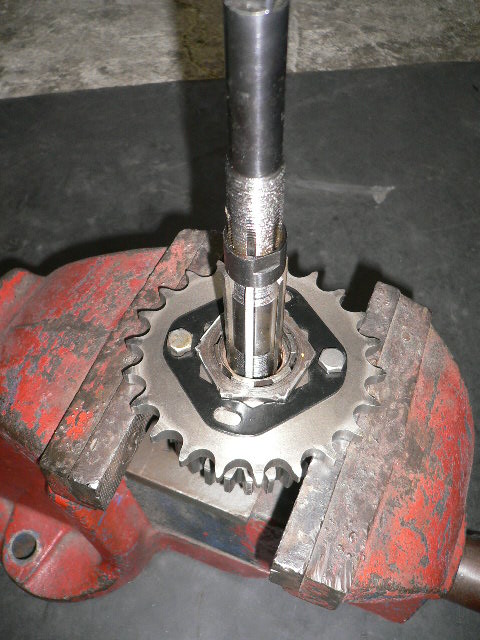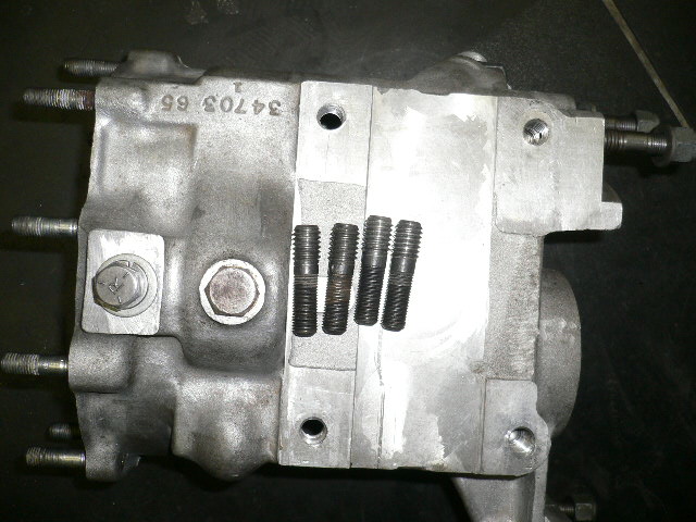 ミッションケースのスタッドの入れ替えと、メインドライブギヤブッシュの入れ替え&リーマでのサイズ合わせ中の写真です。