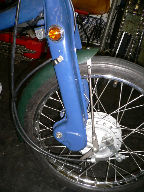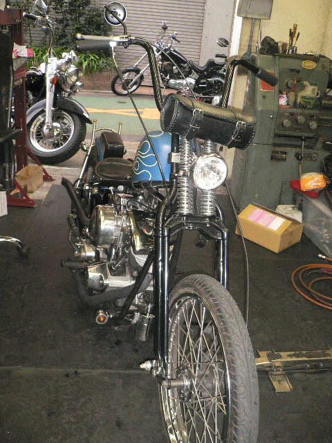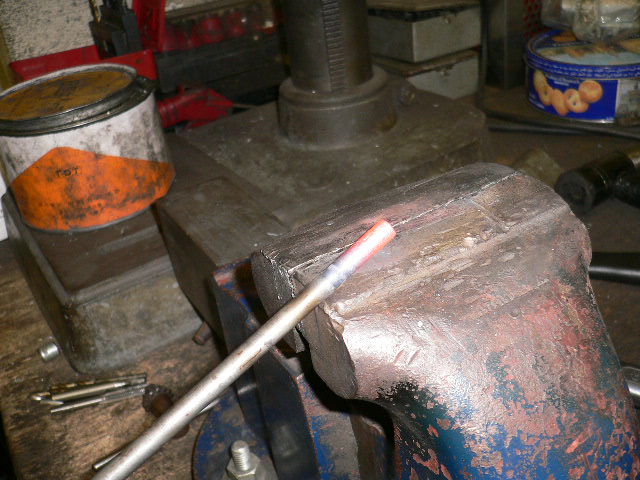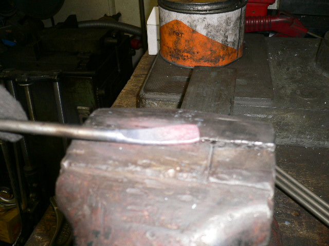 フロントフェンダーを製作中。丸棒をあぶって、たたいて、ステーの部品を作っているところです。